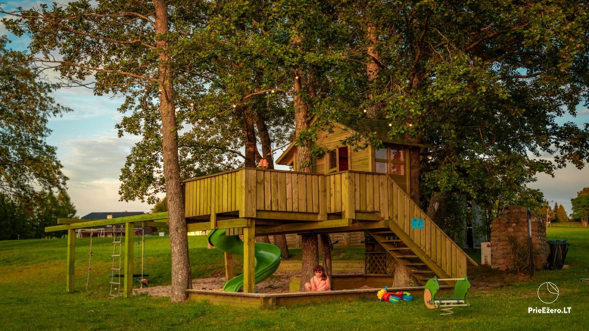 Bērniem piedāvājam spēlēt rotaļu laukumā, baudīt šūpoles, lēkt uz batuta, spēlēt galda spēles.