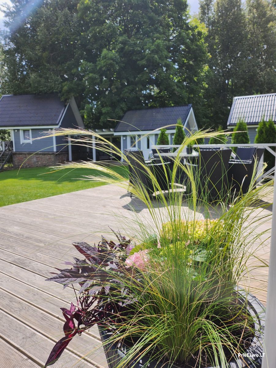 Pagalmā Jūsu ērtībām: lapene, atvērts lapene, āra mēbeles, restes, kamīns, sauļošanās gultas, hammuļi.