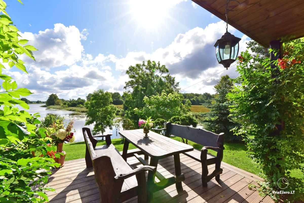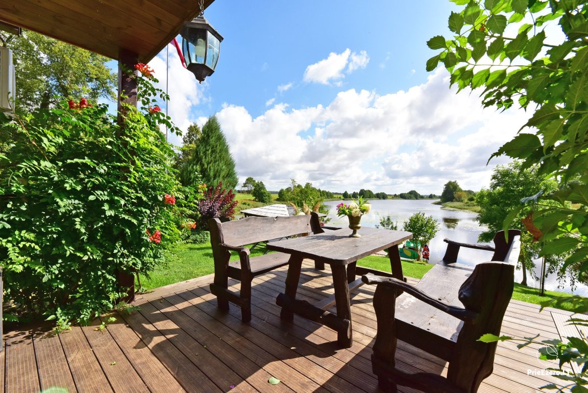 - Terase ar skaistu skatu uz dīķi un ainavu
