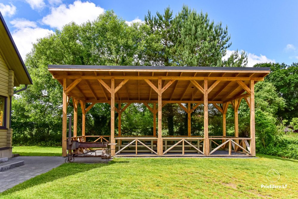 Pagalmā Jūsu ērtībām: lapene, atvērts lapene, āra mēbeles, restes, autostāvvieta, sauļošanās gultas, hammuļi.