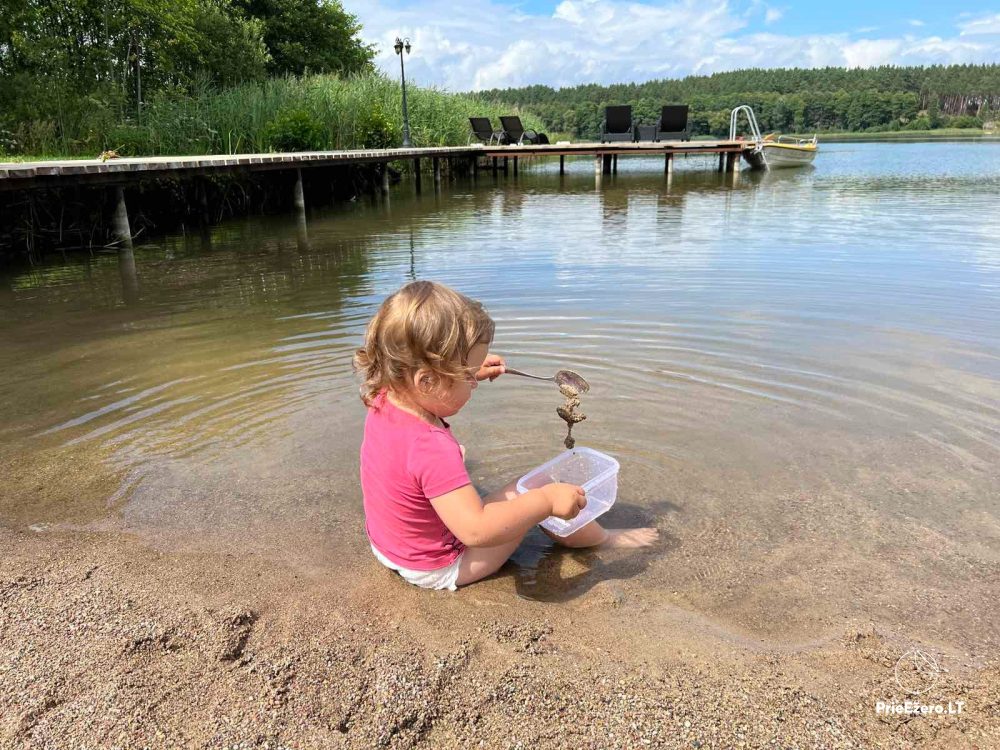 Tie, kam patīk aktīva atpūta, var makšķerēt ezerā, airēt laivu, izmēģināt ūdensslēpes, īrēt SUP dēli, īrēt motorlaivu, iet sēņot, ogot, piedalīties ekskursijās.