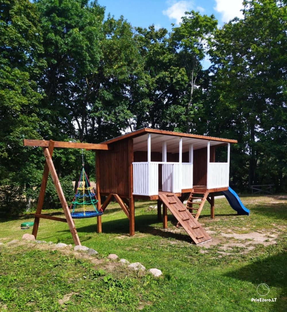 Bērniem piedāvājam spēlēt rotaļu laukumā, baudīt šūpoles.