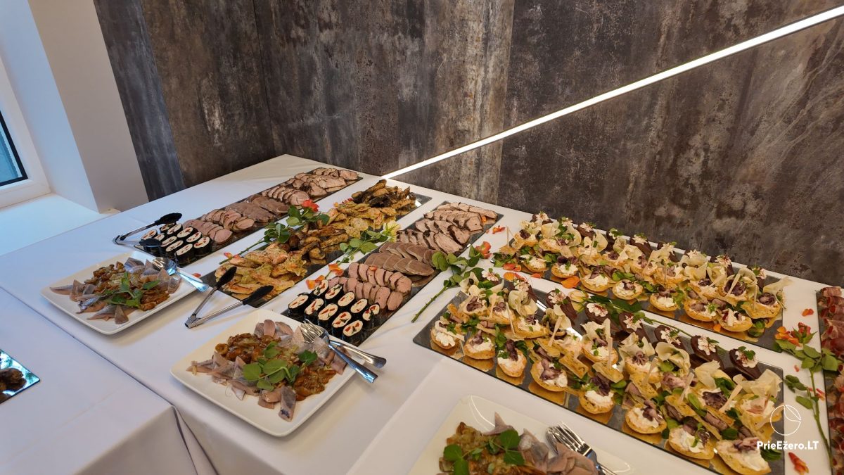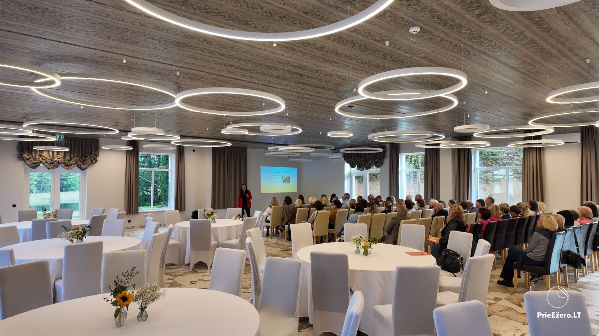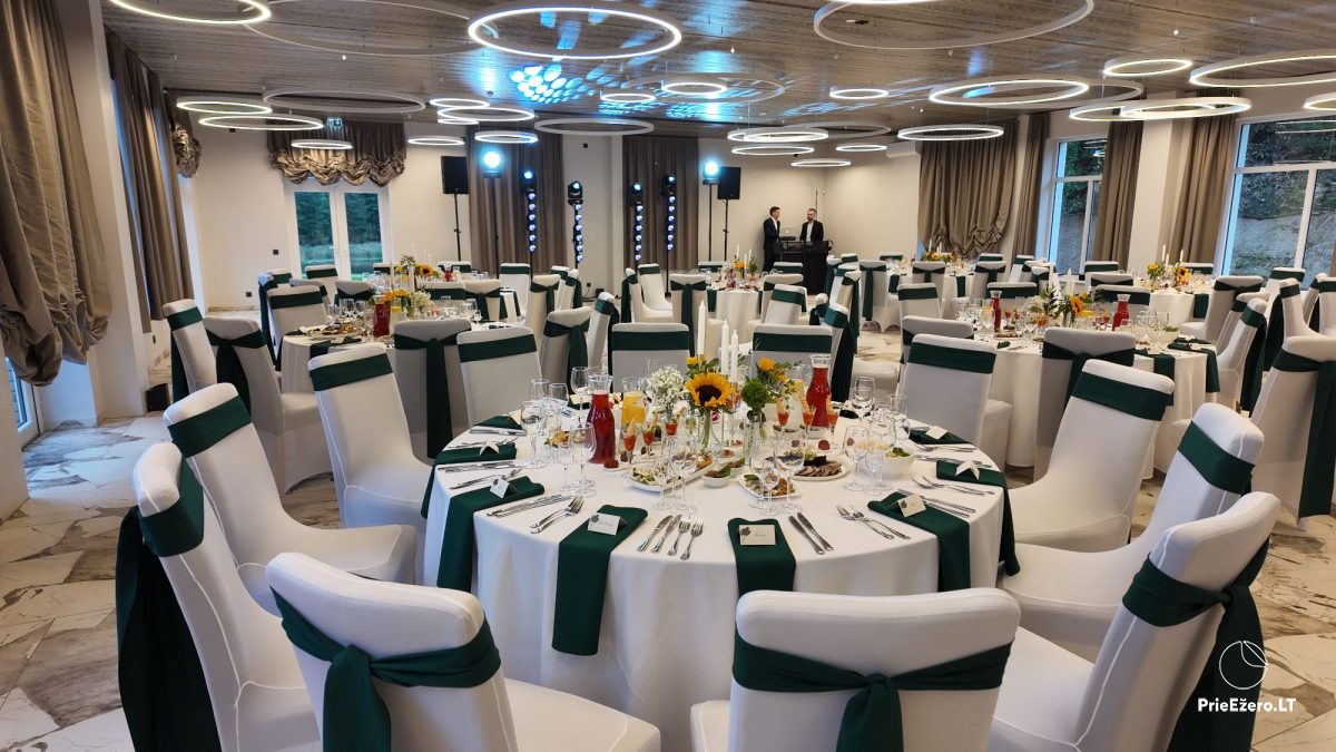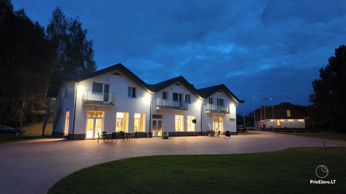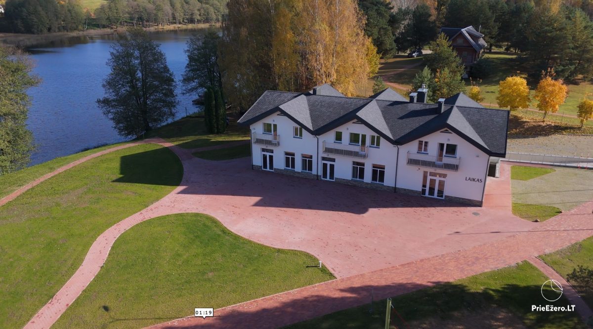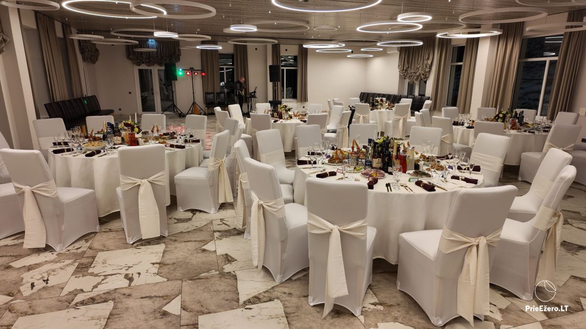 Iekšpusē viesu ērtībām: virtuve atsevišķa, bezvadu internets (wi-fi), tv, gultas piederumi, dvieļi, veļas mašīna, banketu zāle, konferenču zāle bez aprīkojuma un citas ērtības.
