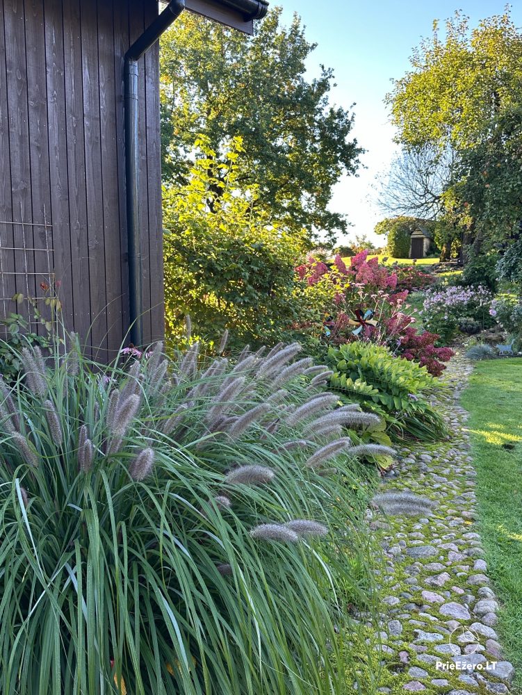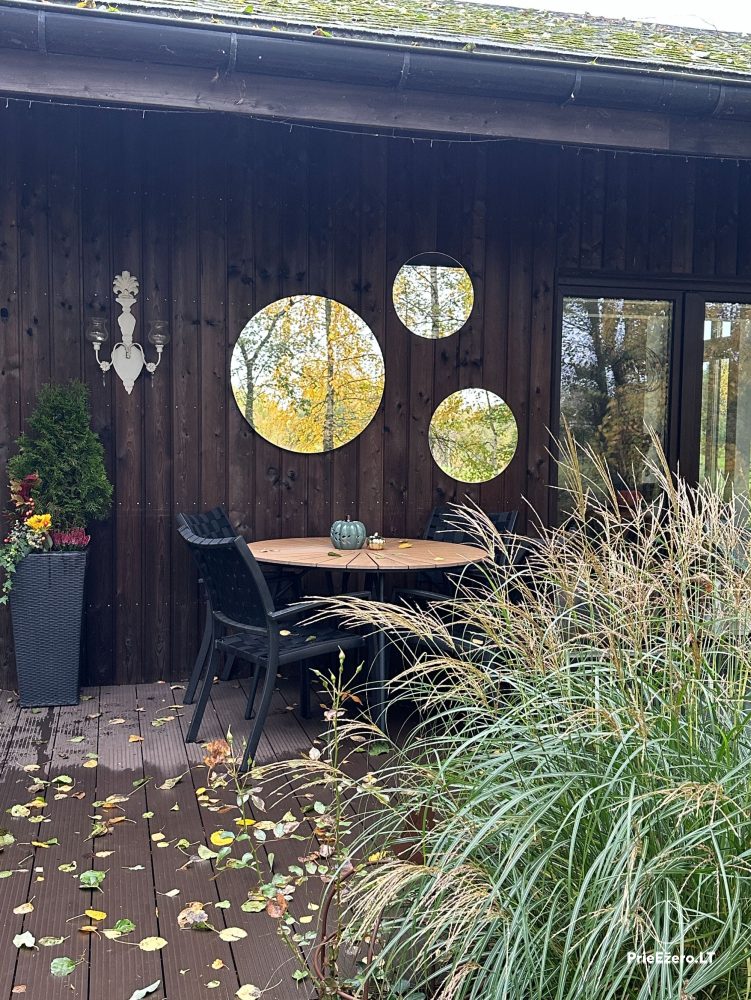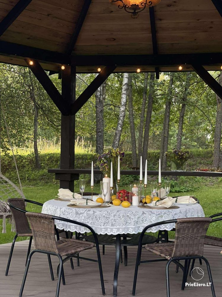Teritorijā Jūsu ērtībām: lapene, āra mēbeles, restes, autostāvvieta, sauļošanās gultas, hammuļi.