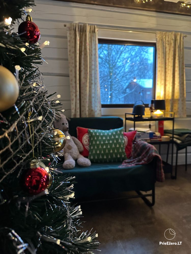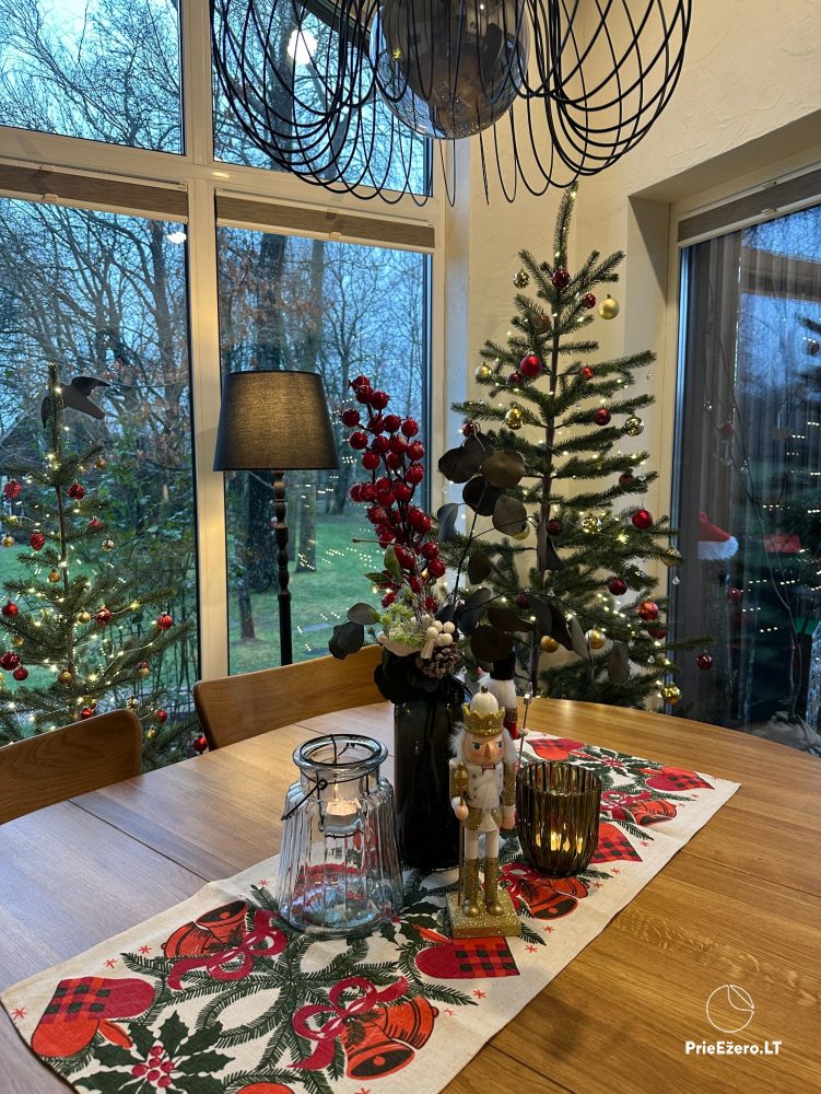 Iekštelpās viesiem: virtuve atsevišķa, trauki, galda piederumi, bezvadu internets (wi-fi), tv, kabel / sat tv, matu žāvētājs, gultas piederumi, dvieļi, peldmēteļi, veļas mašīna, bērnu gultiņa, bērnu barošanas krēsls un citas ērtības.