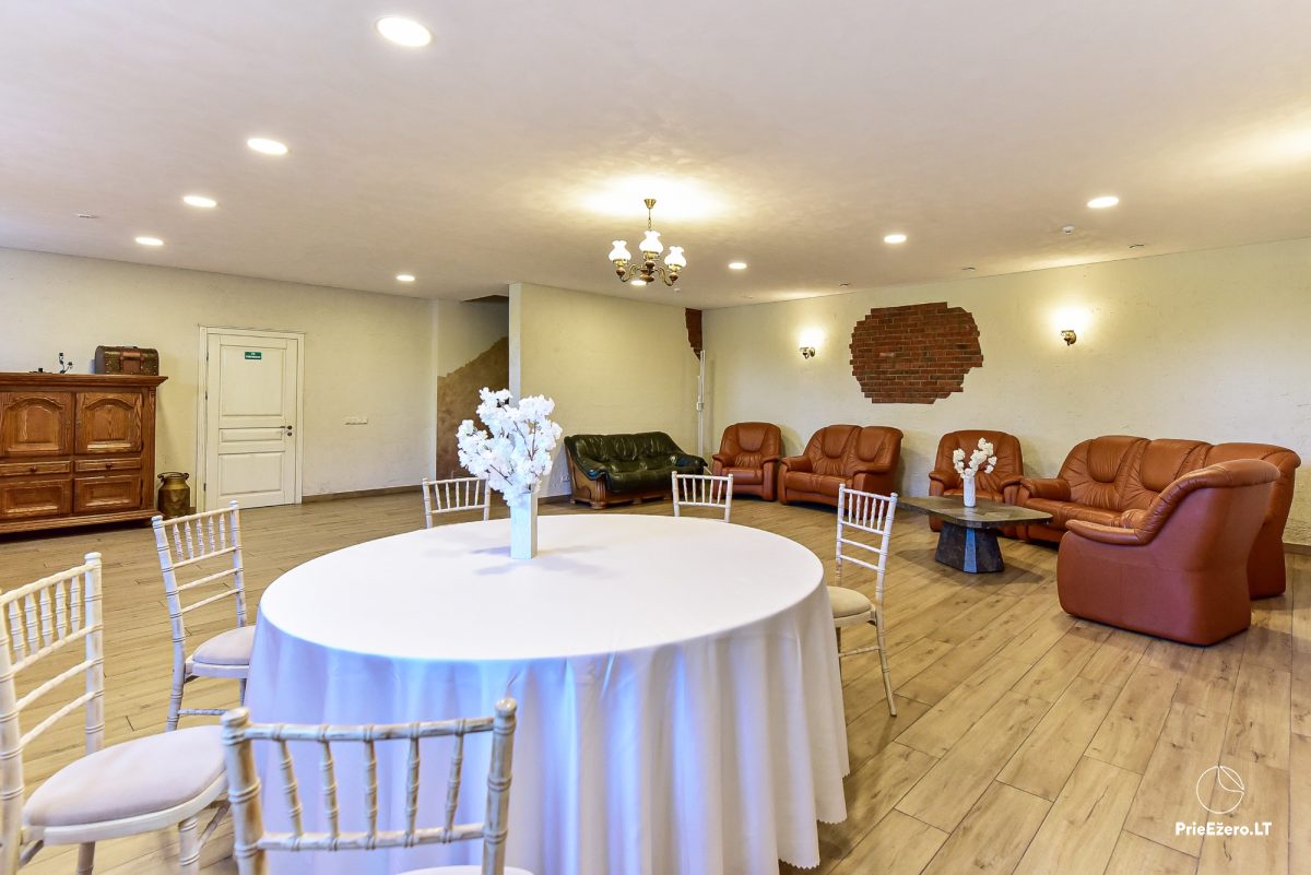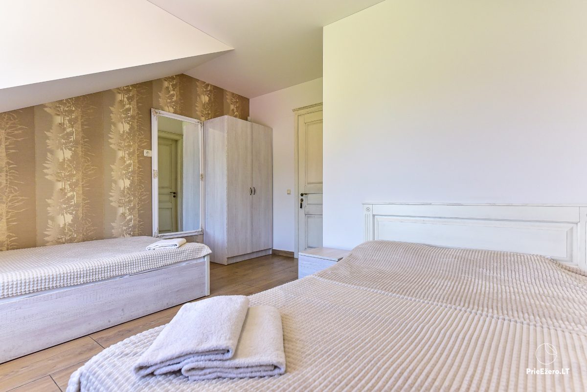 Jūsu ērtai atpūtai: mājas. Arī tiek piedāvāta īre visa sēta, kurai ir līdz 104 vietas nakšņošanai un līdz 120 vietas svinībām.