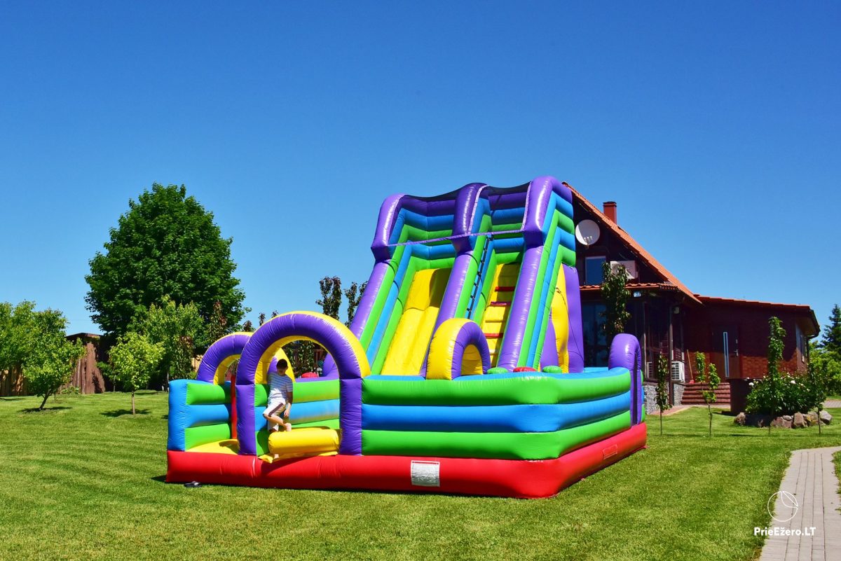 Bērniem piedāvājam baudīt šūpoles, lēkt uz batuta.