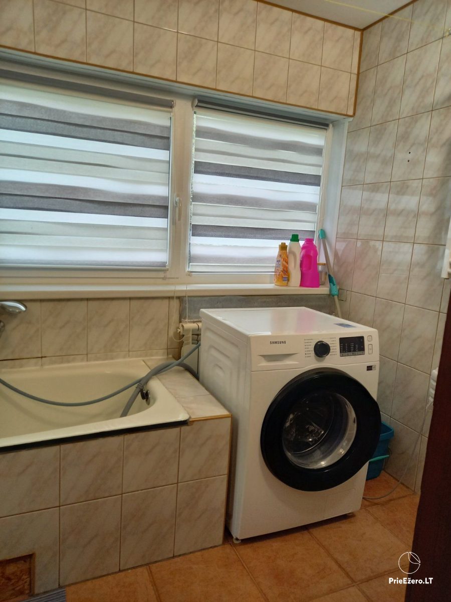 Iekšpusē viesu ērtībām: virtuve atsevišķa, trauki, galda piederumi, bezvadu internets (wi-fi), tv, kabel / sat tv, matu žāvētājs, gultas piederumi, dvieļi, veļas mašīna, bērnu gultiņa un citas ērtības.