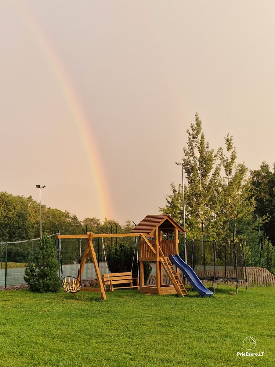 Bērniem piedāvājam sportot bērnu sporta laukumā, spēlēt spēļu istabā, kad līst lietus vai laiks ir vēsāks, spēlēt rotaļu laukumā, baudīt šūpoles, lēkt uz batuta.