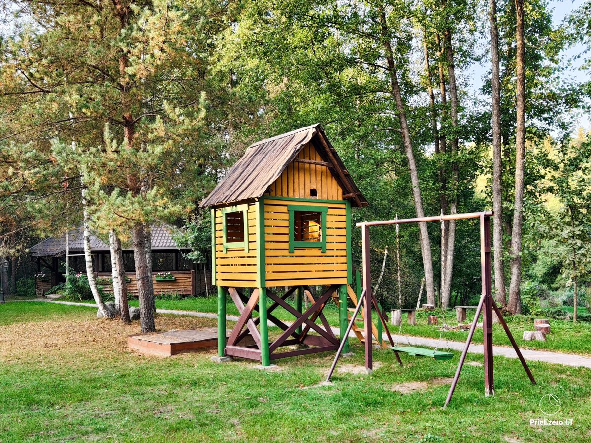 Bērniem piedāvājam sportot bērnu sporta laukumā, spēlēt rotaļu laukumā, baudīt šūpoles.