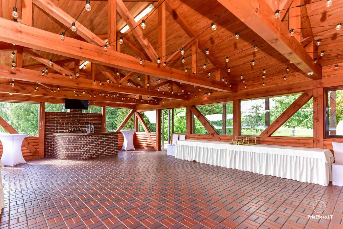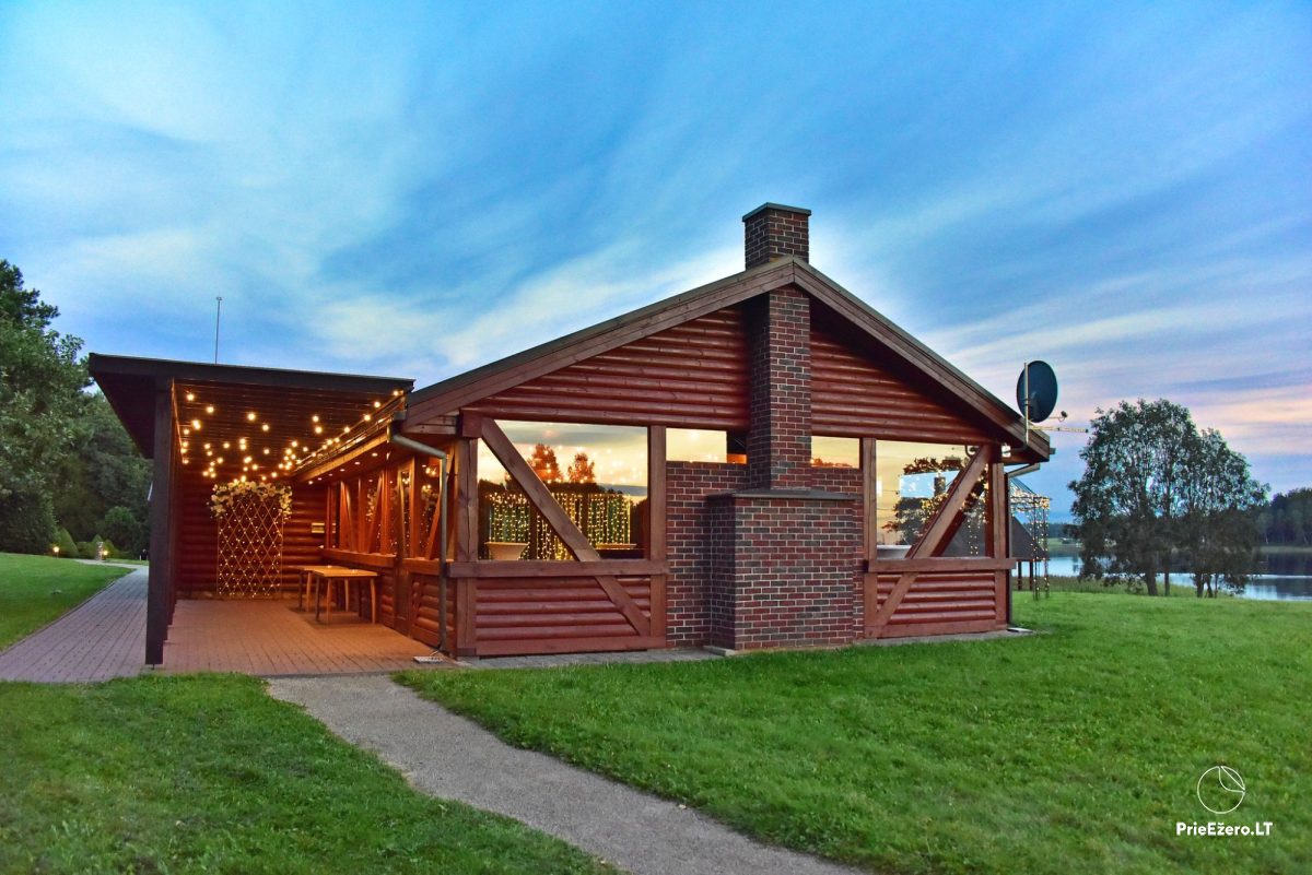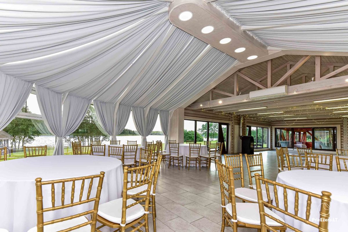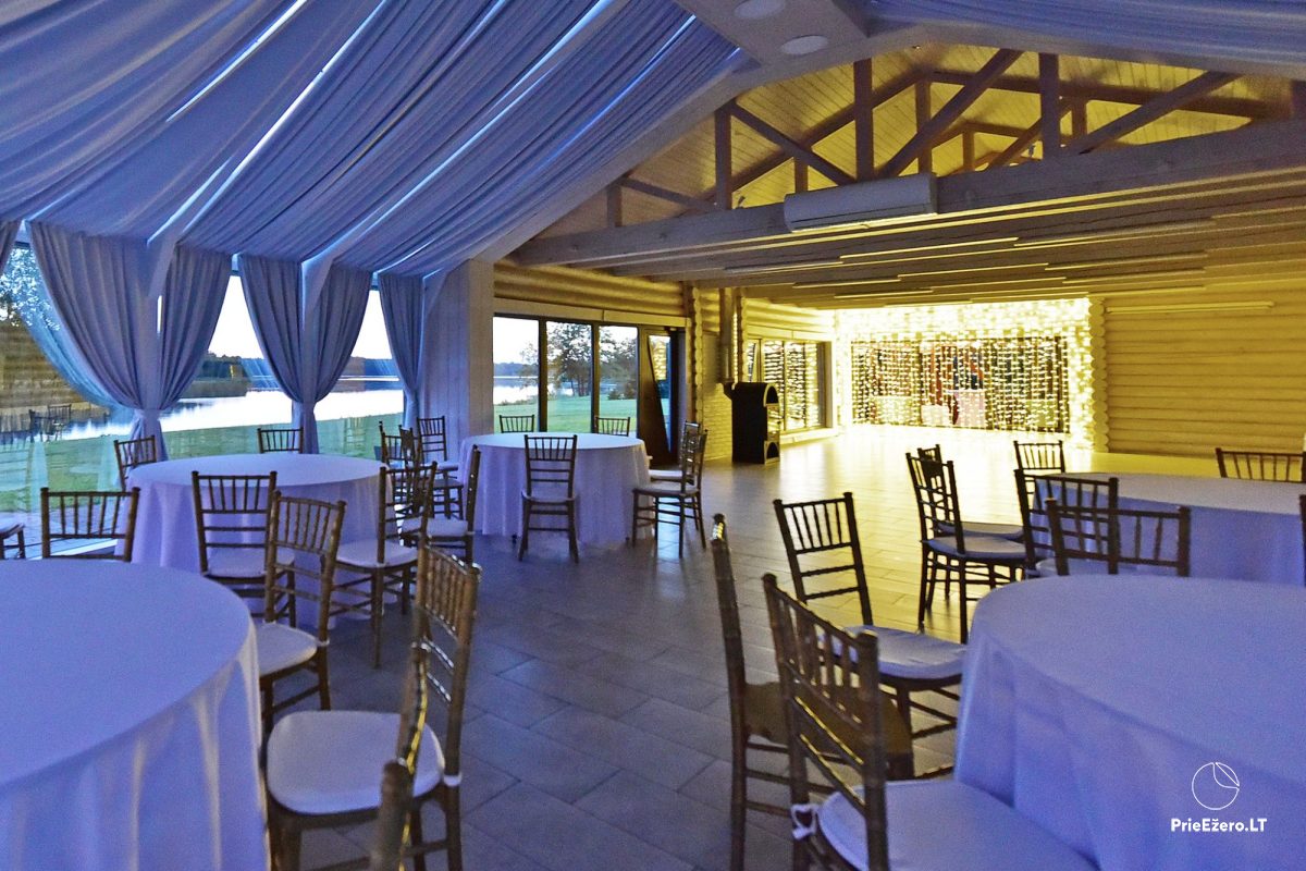 - Išskirtinio dizaino renginių-pokylių salės iki 80 svečių (130+80 kv. m) su puikiu ežero vaizdu