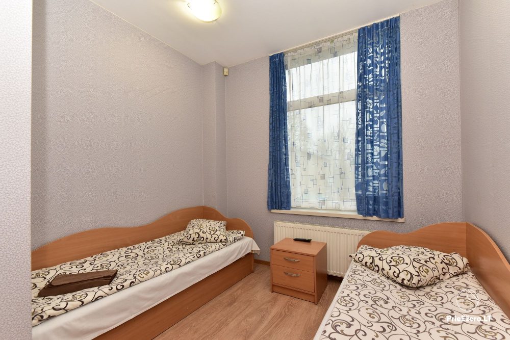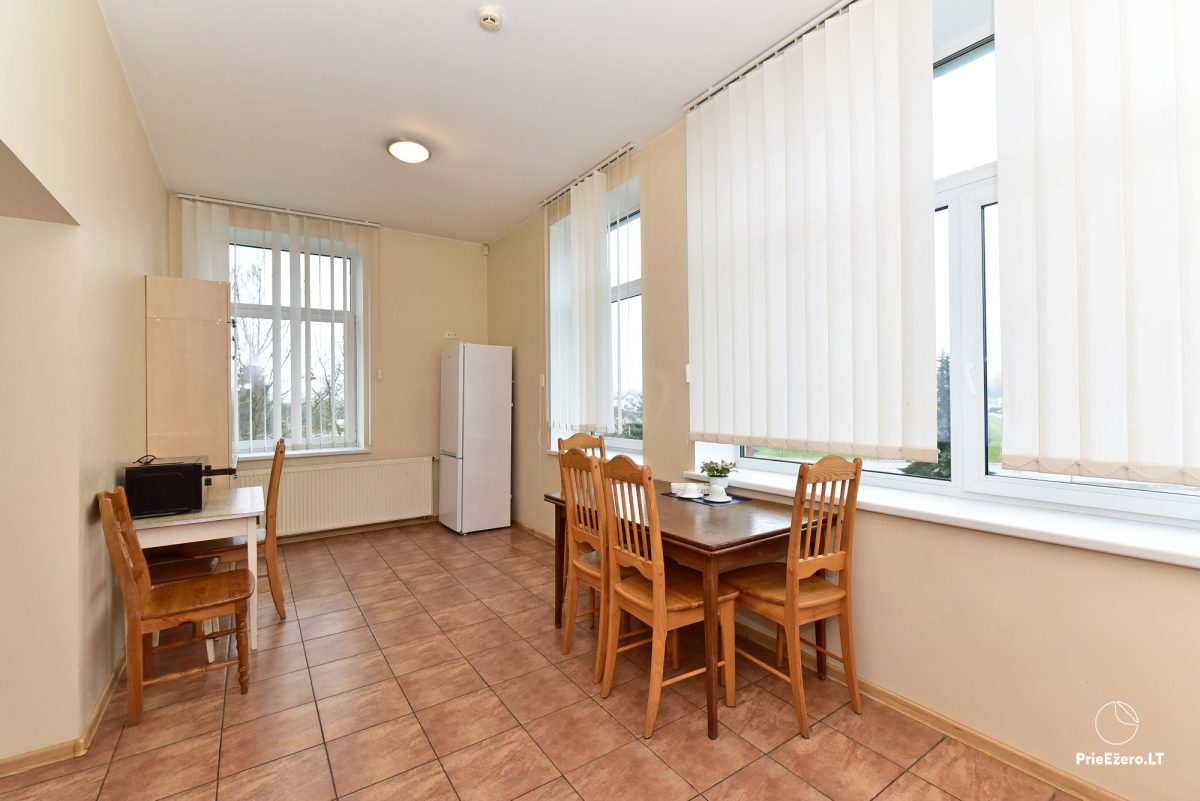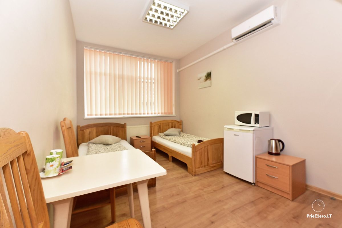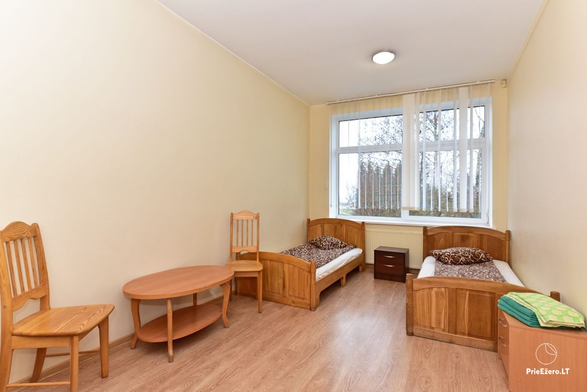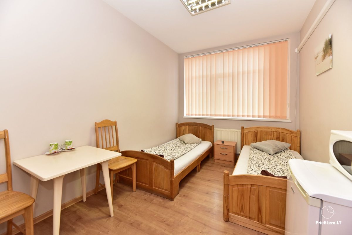 - Ir pieejamas divvietīgas un četrvietīgas istabas īrei. Lielākiem uzņēmumiem ir iespēja istabas apvienot.