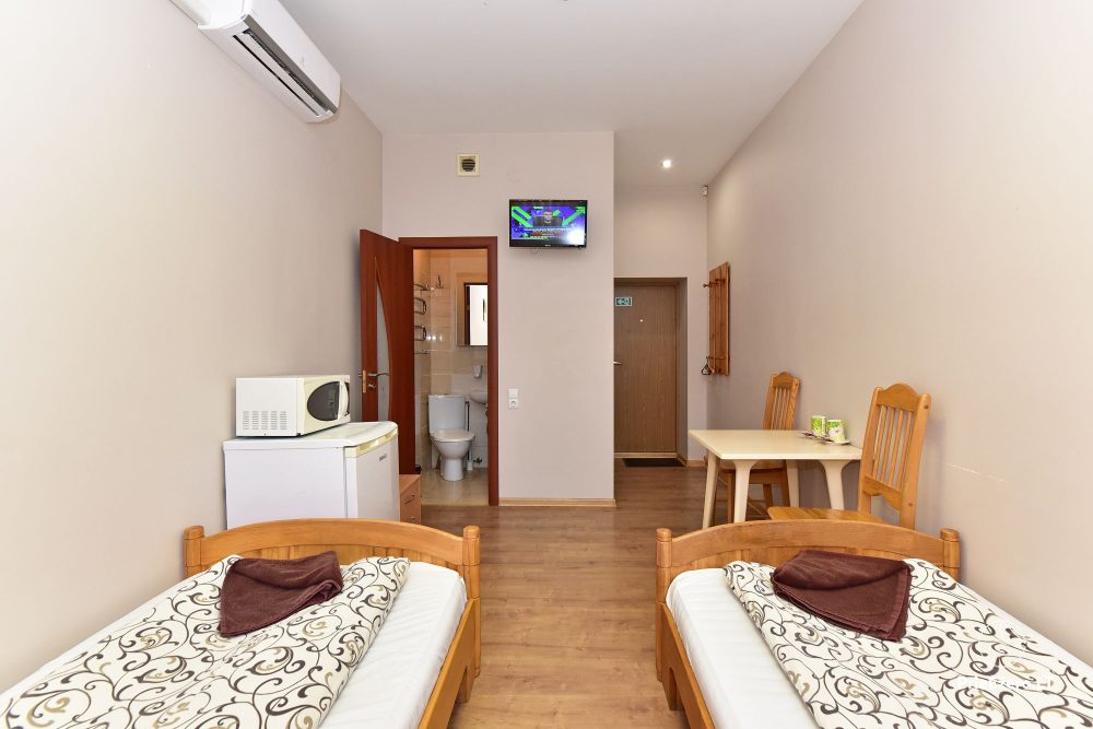 - Katrā numurā ir: vannas istaba (duša, tualete un izlietne), televizors, galds, ledusskapis, tējkanna, mikroviļņu krāsns