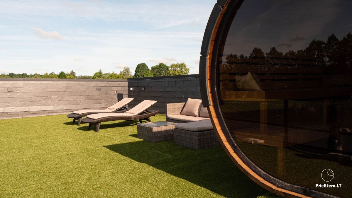 Pagalmā Jūsu ērtībām: lapene, slēgts lapene, āra mēbeles, restes, autostāvvieta, elektriskās automašīnas lādētājs, sauļošanās gultas, saulessargi, hammuļi.