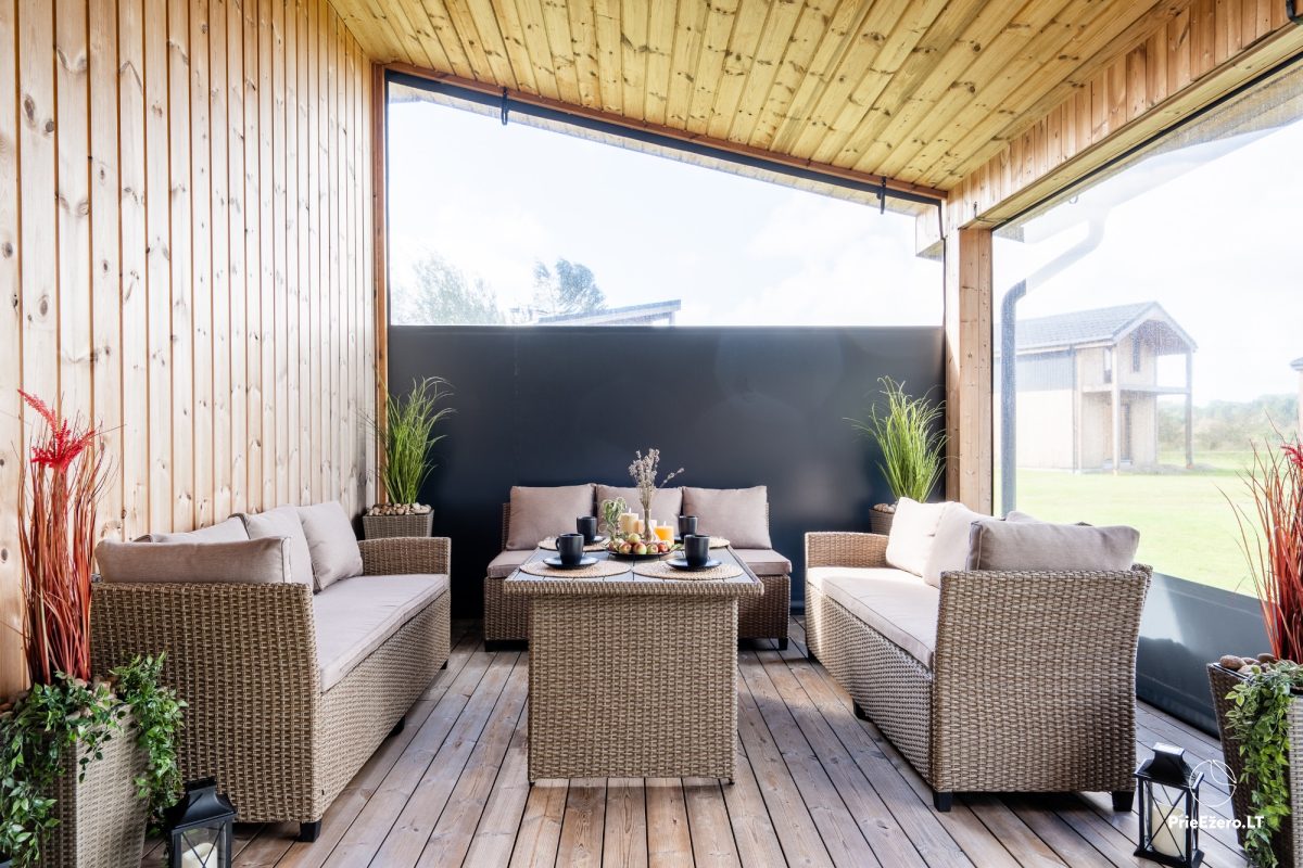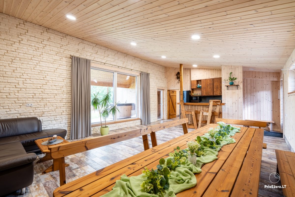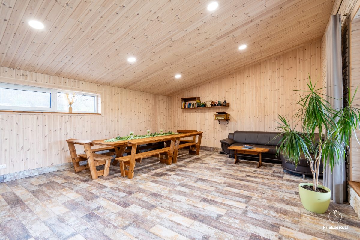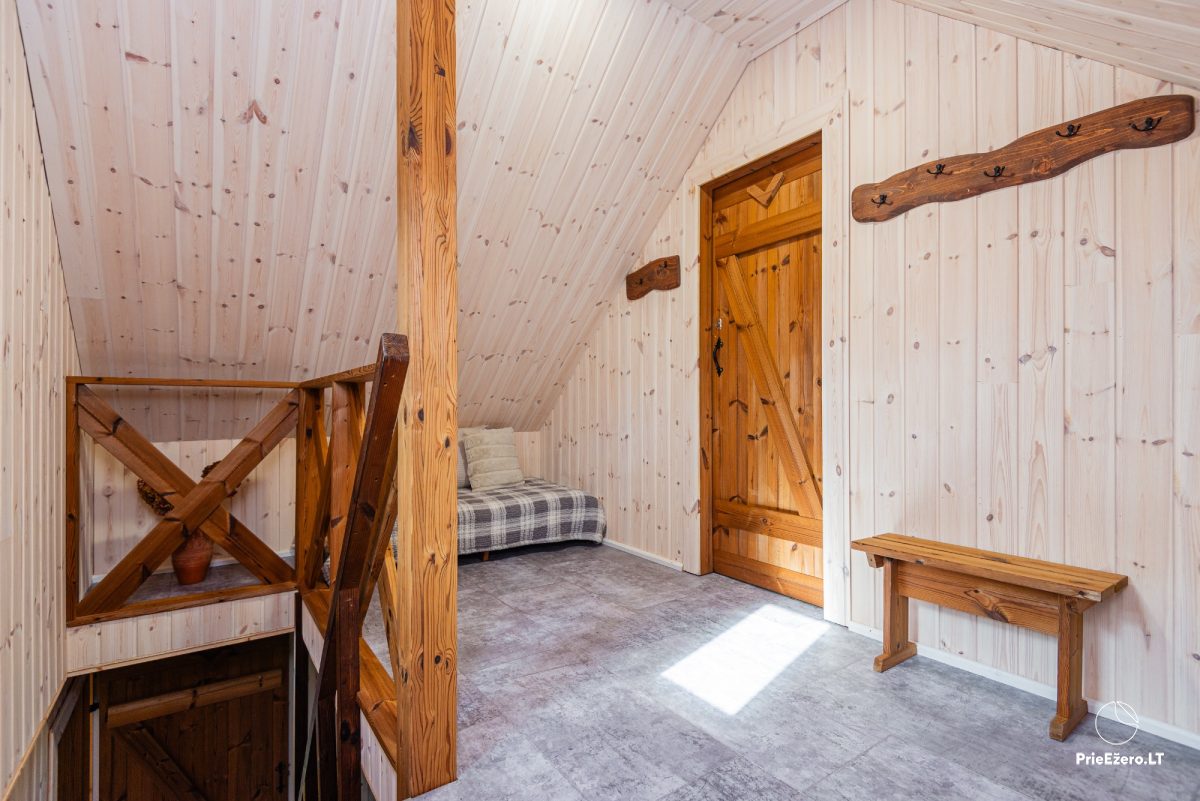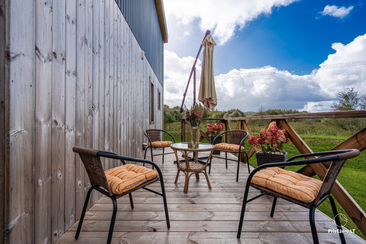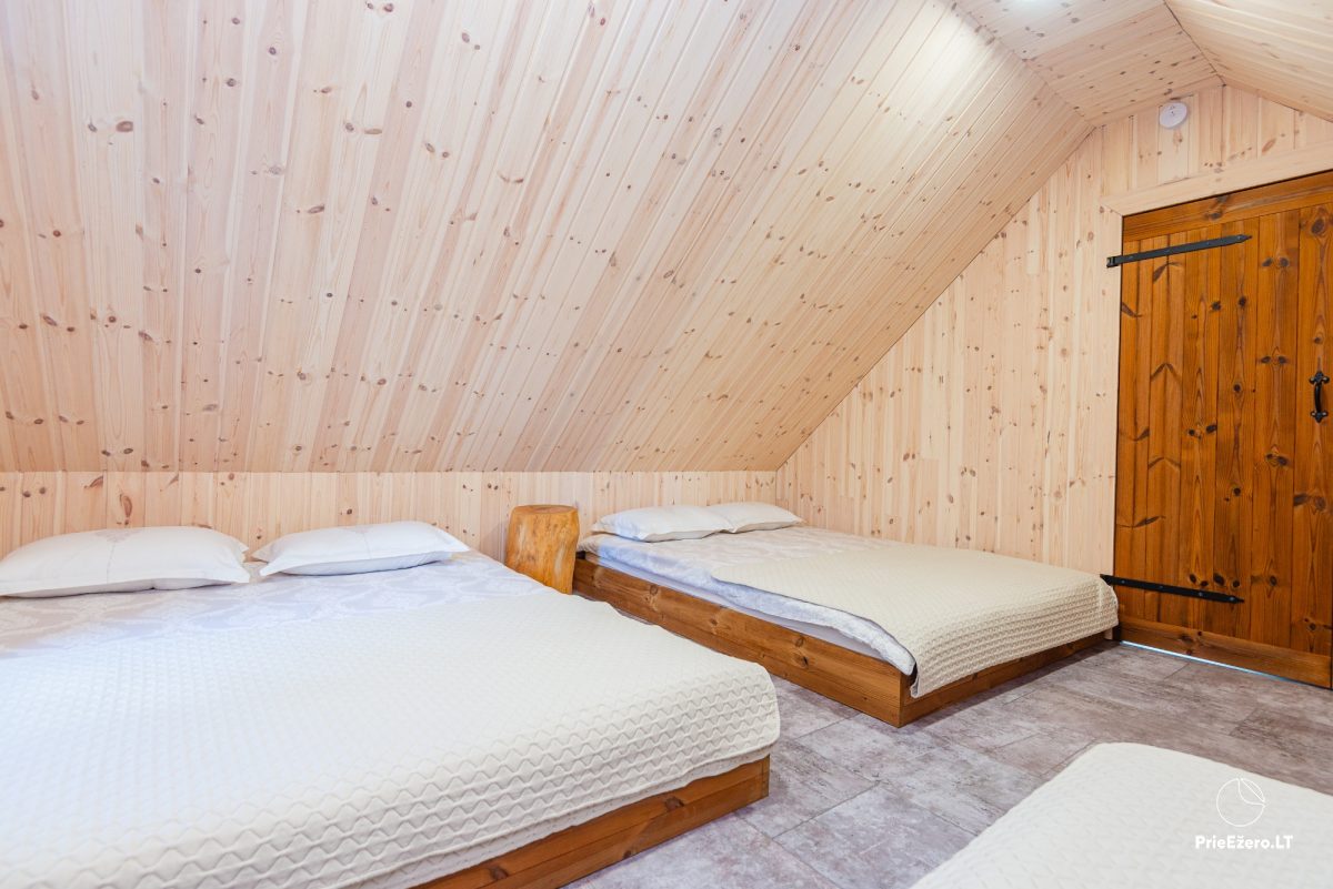 Jūsu izvēlei piedāvājam: astoņvietigs māja. Arī visa sēta tiek izīrēta, kurai ir līdz 8 vietas nakšņošanai un līdz 15 vietas svinībām.