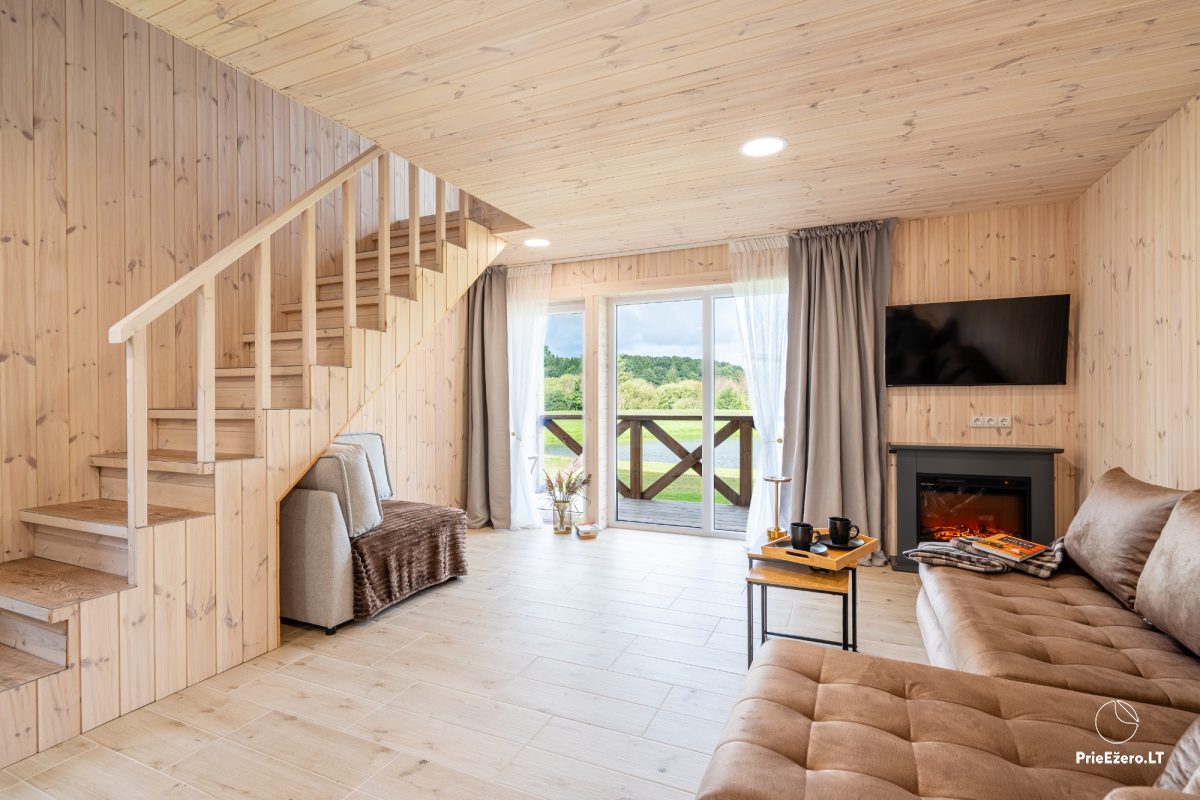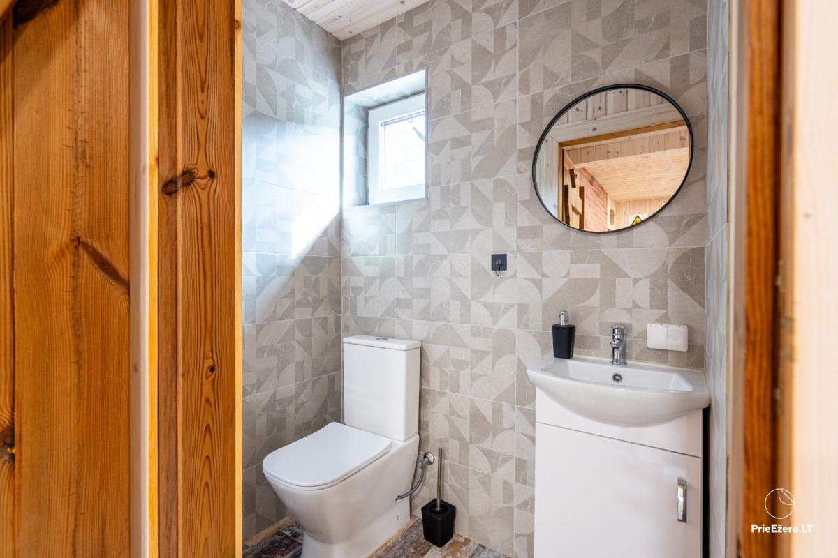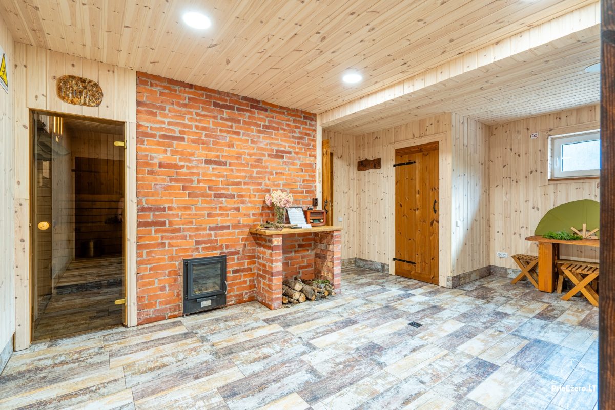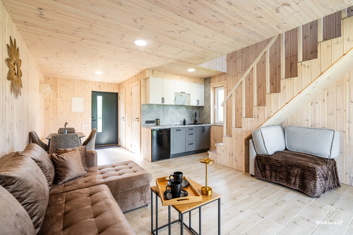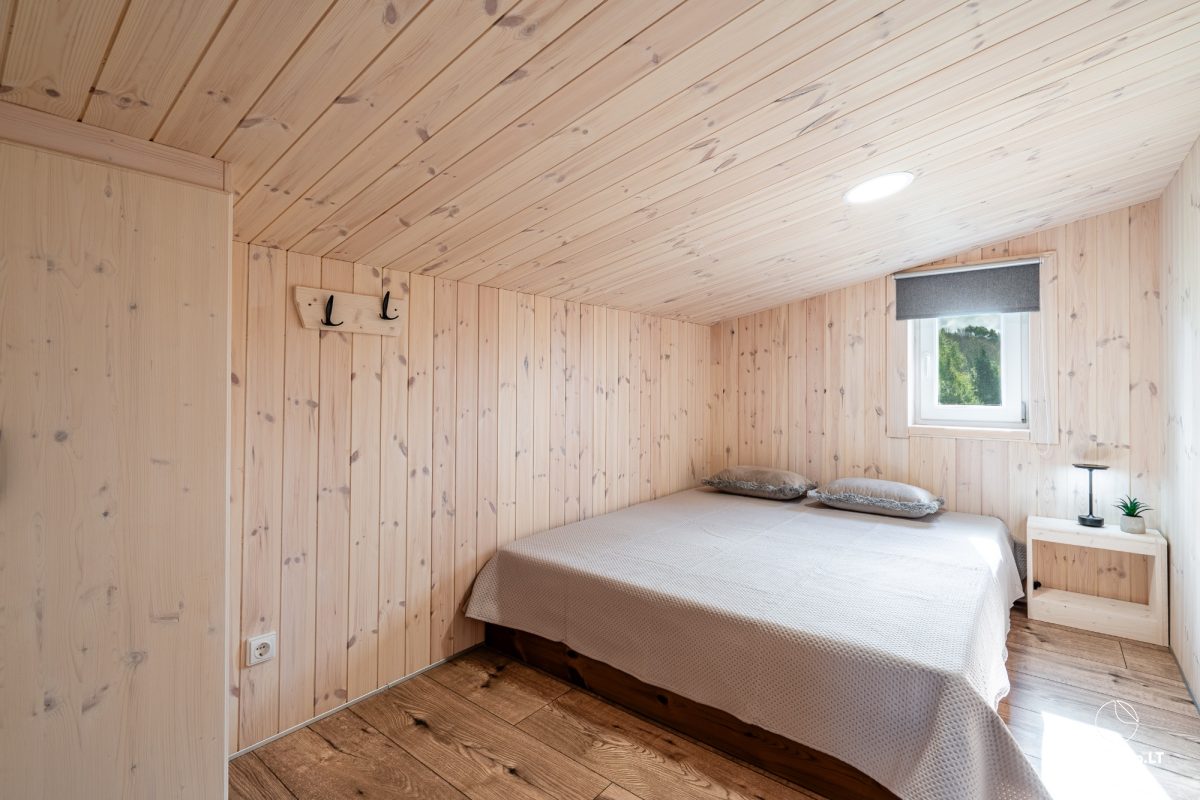 Iekšpusē viesu ērtībām: virtuve atsevišķa, trauki, galda piederumi, matu žāvētājs, gultas piederumi, dvieļi un citas ērtības.