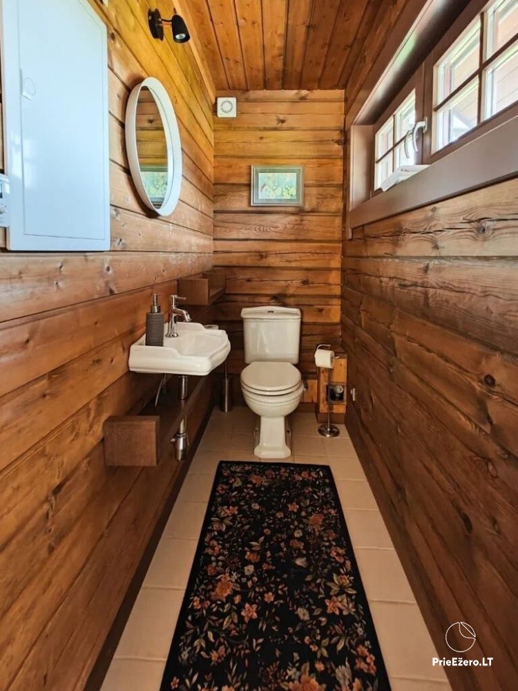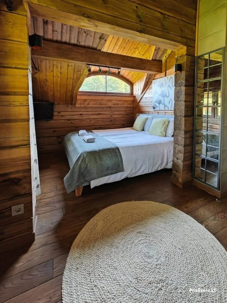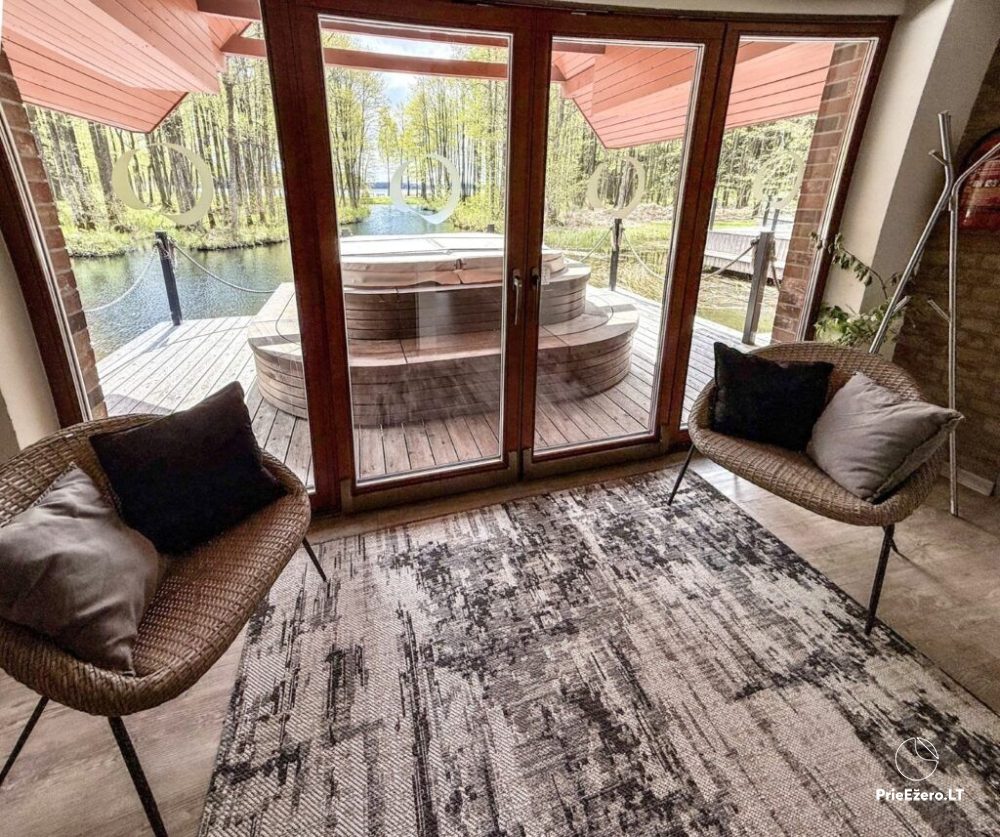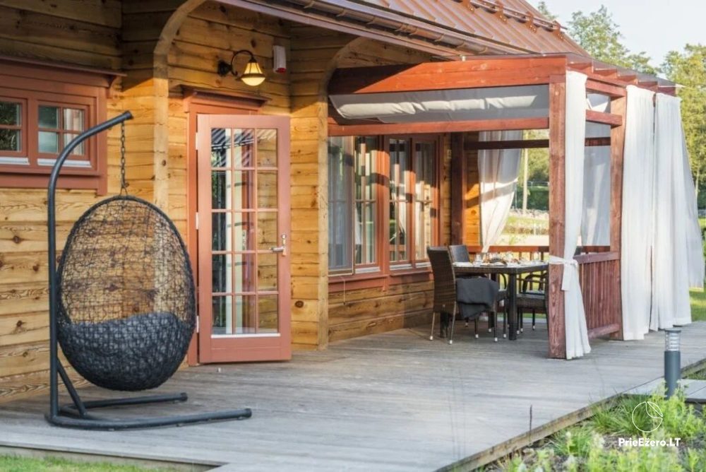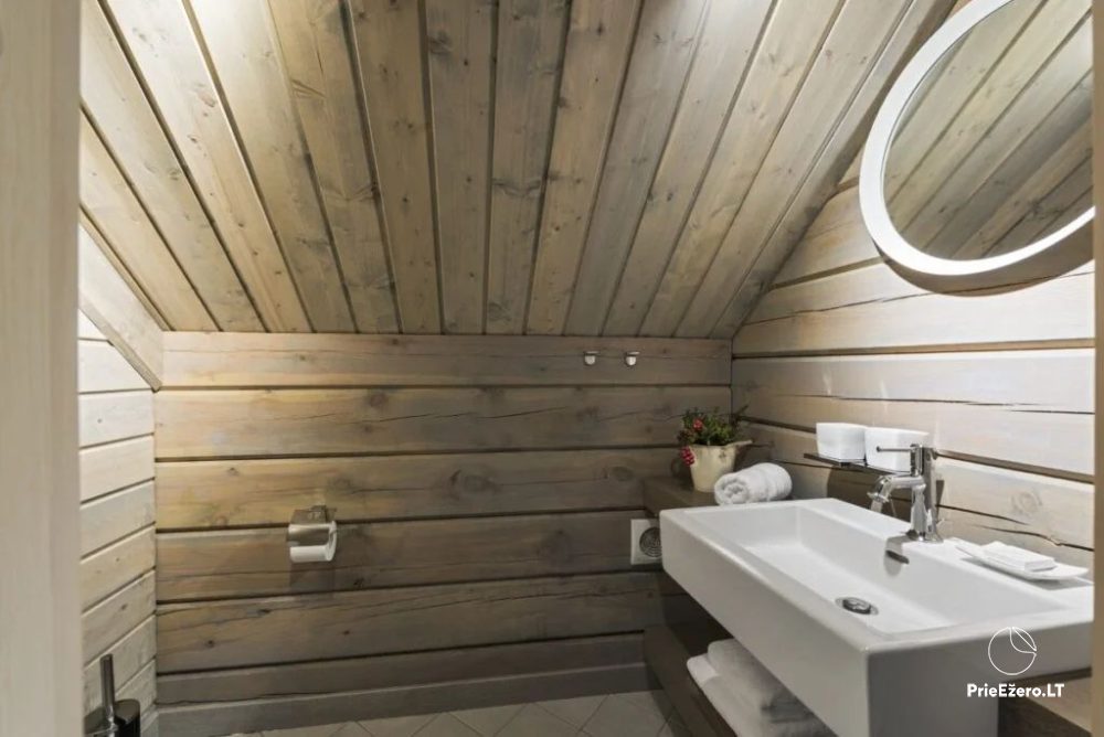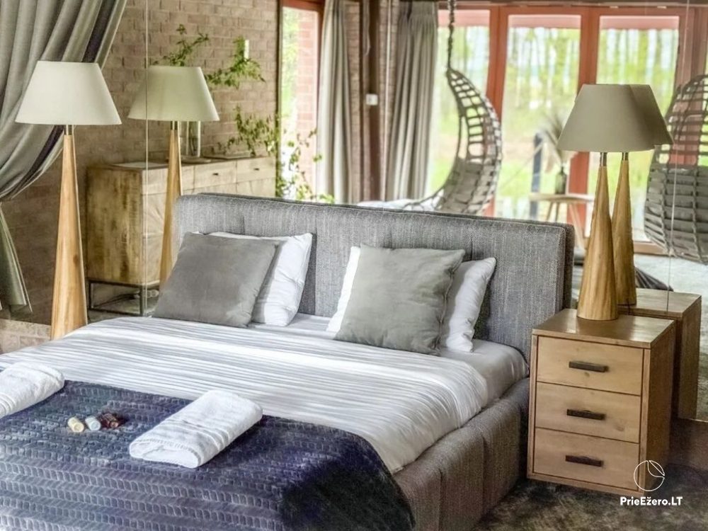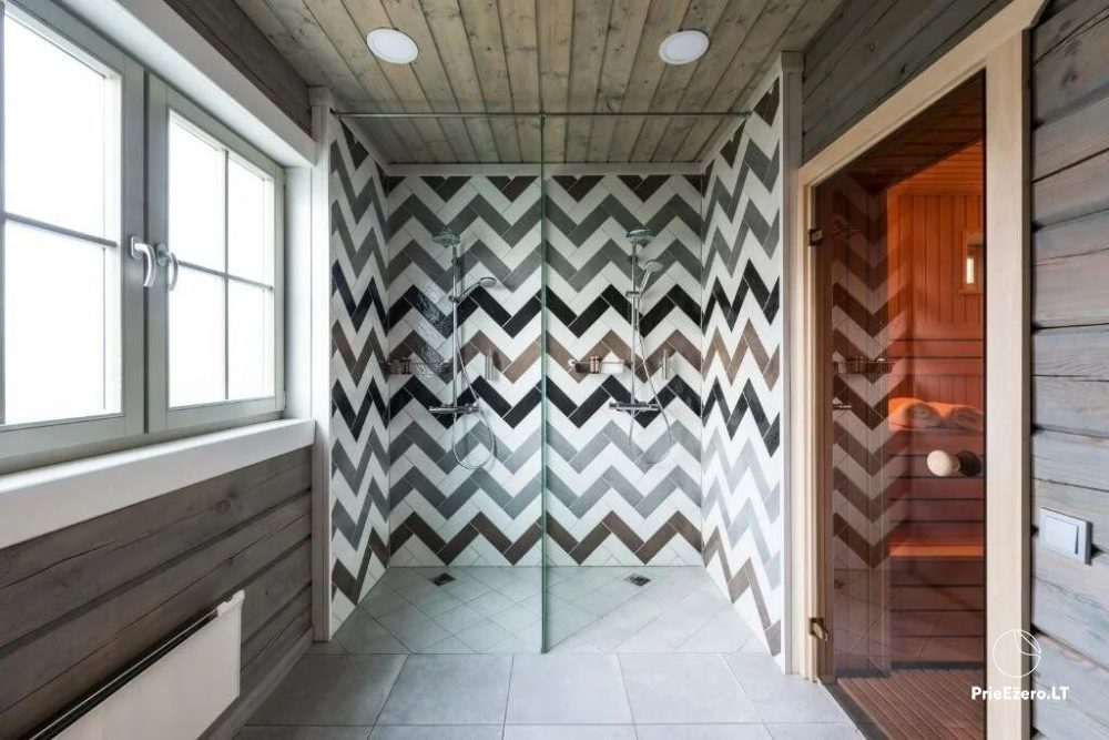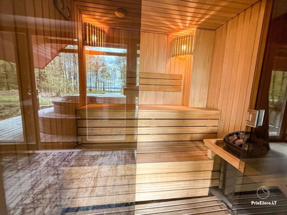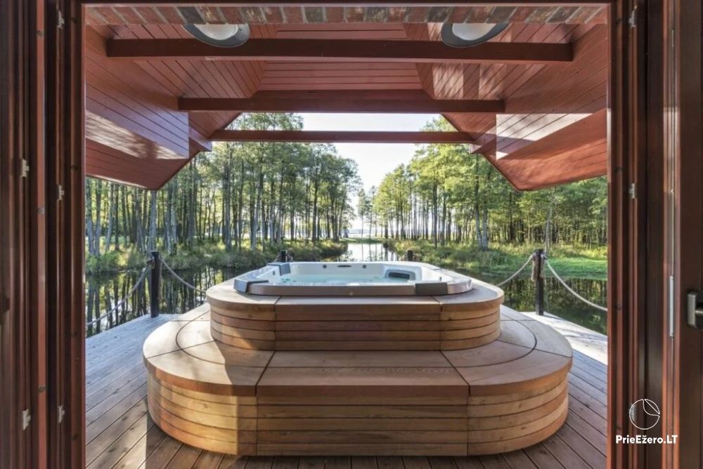 Villa ir paredzēta mājīgai un komfortablai atpūtai 2–4 cilvēkiem, un elektriskā pirts ar skatu uz ezeru ir īsta veldze maņām. Par papildu samaksu var rezervēt āra džakuzi.