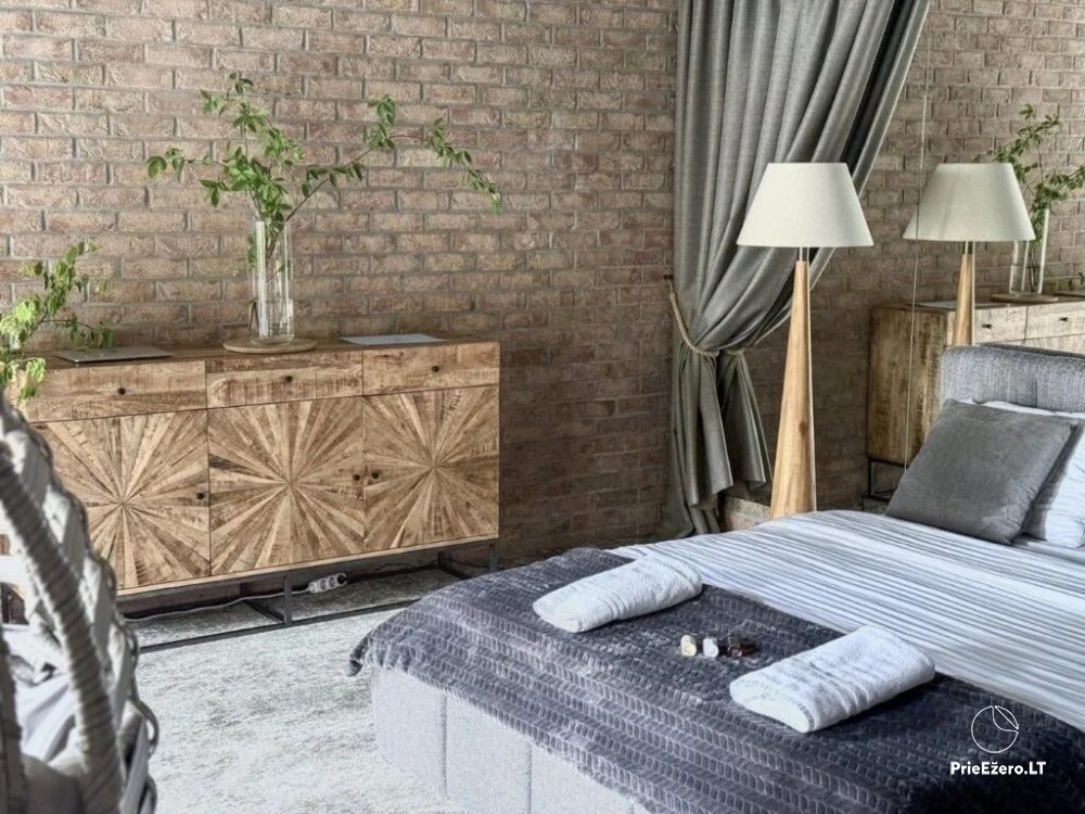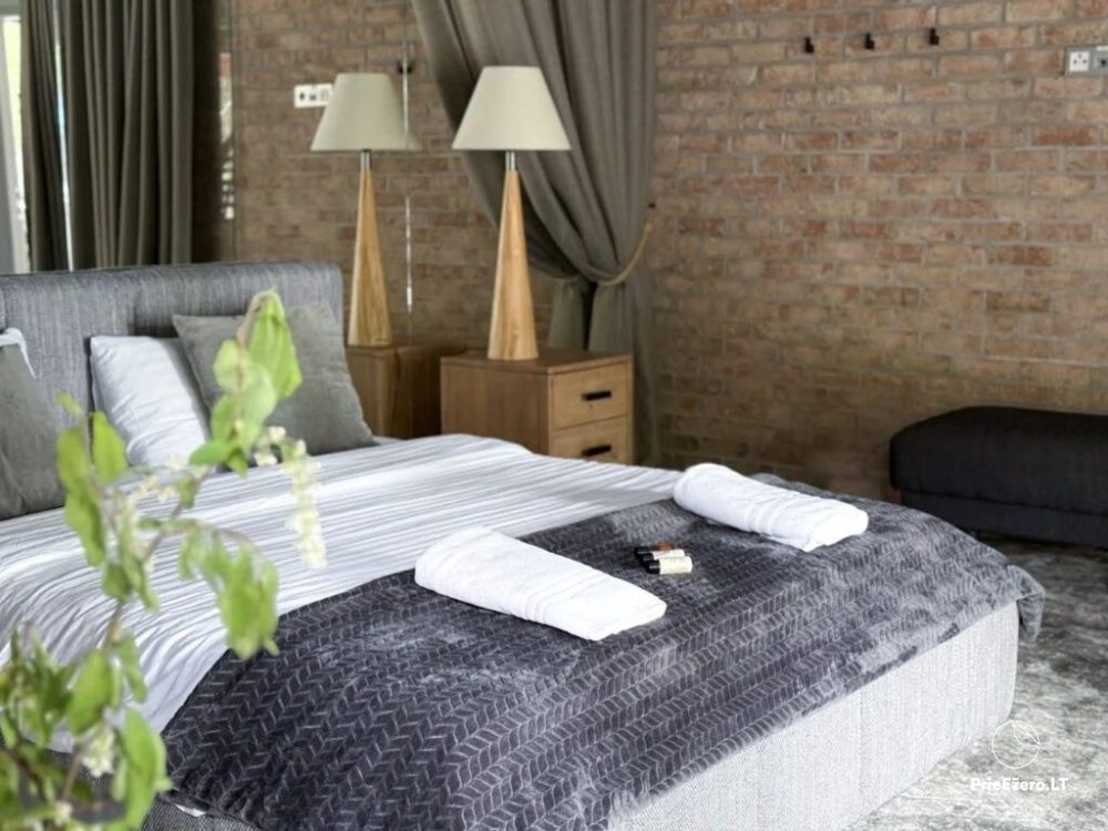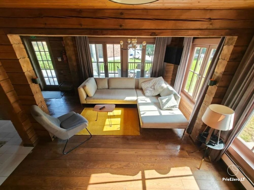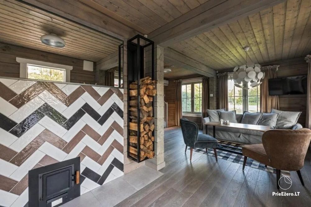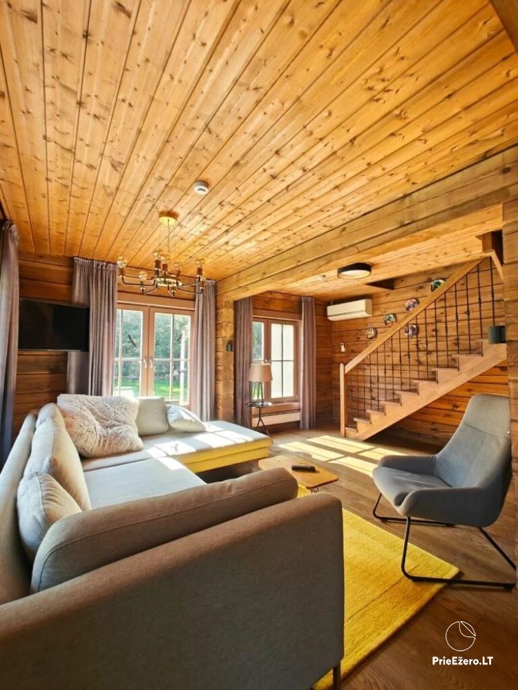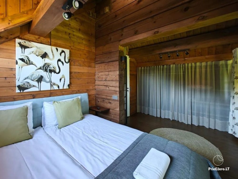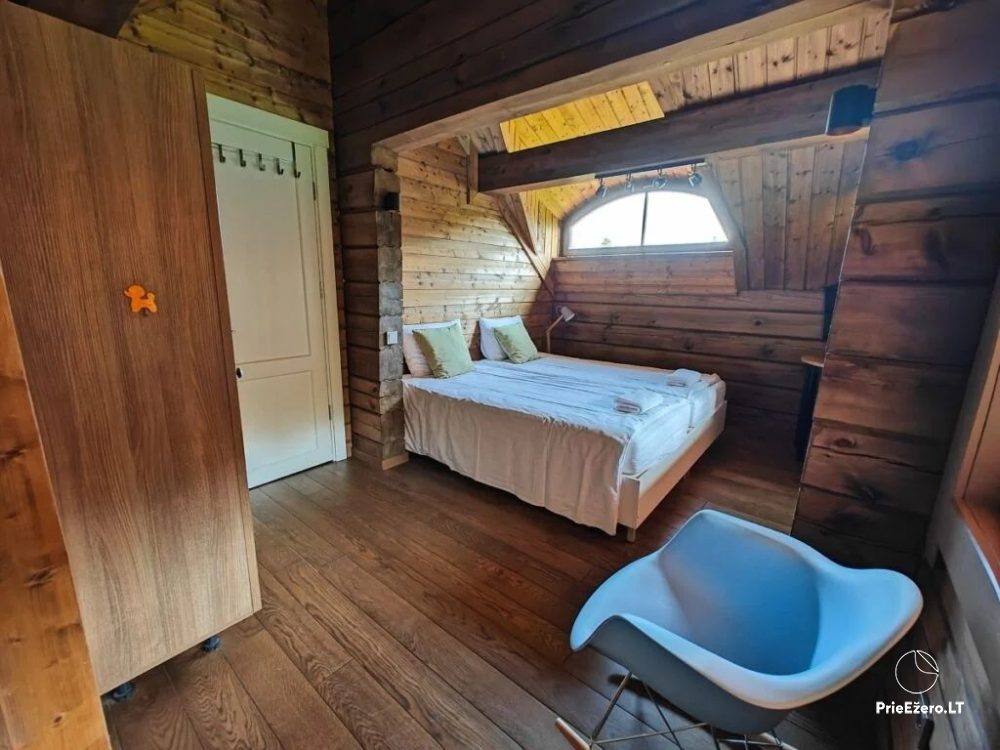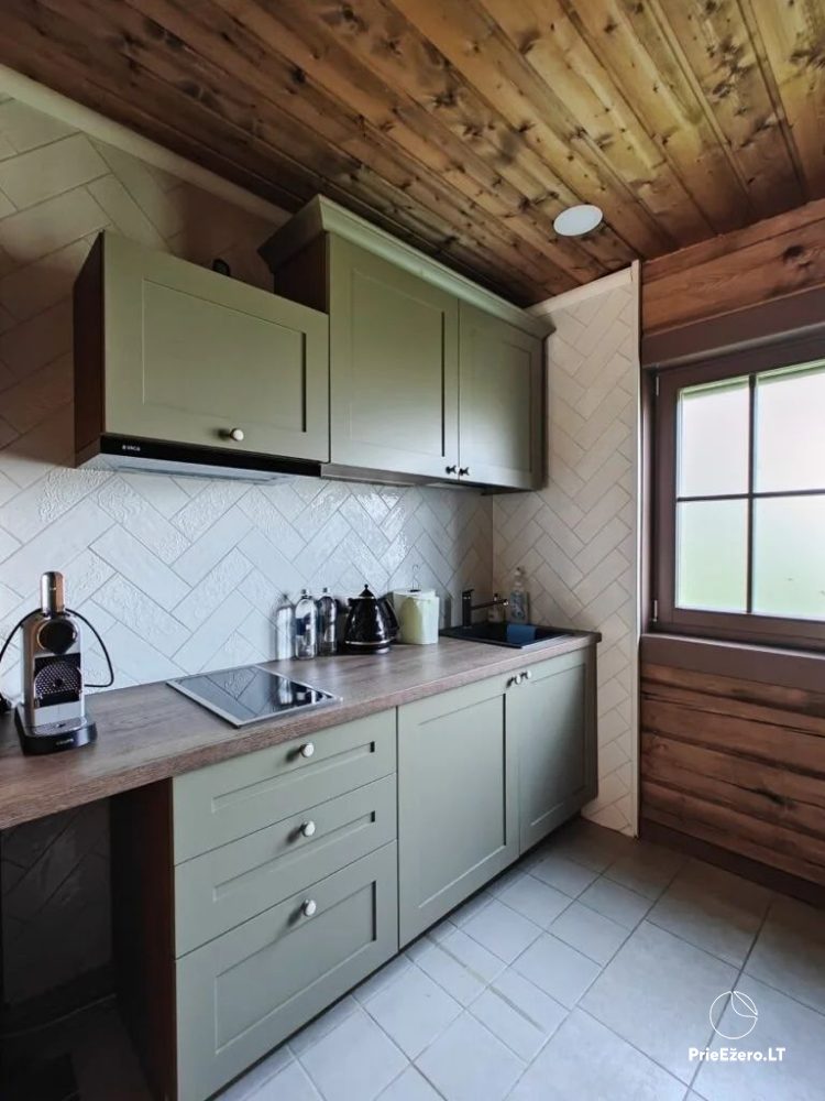Villa ir paredzēta mājīgai un komfortablai atpūtai 2–4 cilvēkiem, un elektriskā pirts ar skatu uz ezeru ir īsta veldze maņām. Par papildu samaksu var rezervēt āra džakuzi.