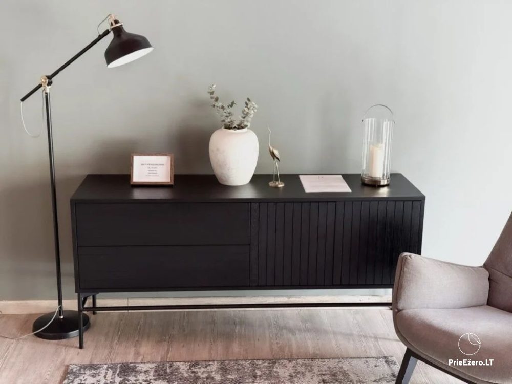 Gracioza izsmalcinātība. SALA Plateliai Resort apartamenti ir veidoti, lai apmierinātu viesu, kuri novērtē augstu kvalitāti, cerības. Šeit atradīsiet lielu divguļamo gultu vai divas atsevišķas gultas, darba zonu, dīvānu un kafijas galdiņu mājīgai vakara atpūtai, lielus logus, kas piepilda telpu ar gaismu, un, protams, privātu terasi ar skatu uz leģendāro Plateliai ezeru.