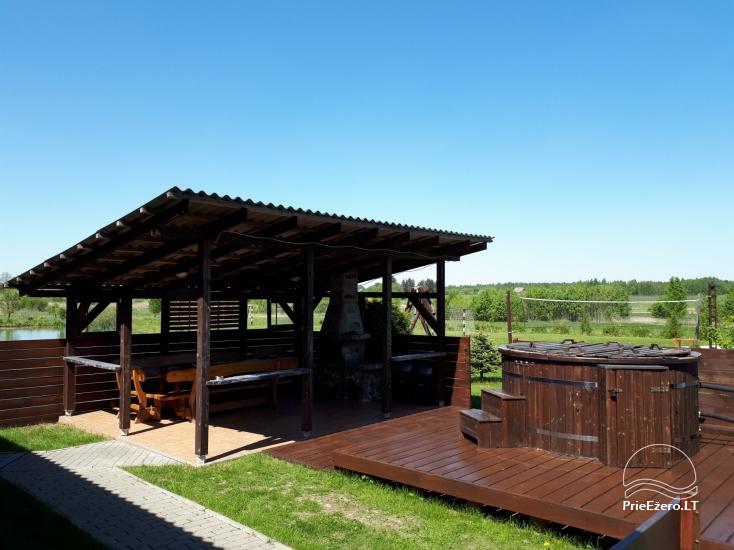 Blakus mājai ir liela lapene ar grila zonu. Dīķis peldēšanai.