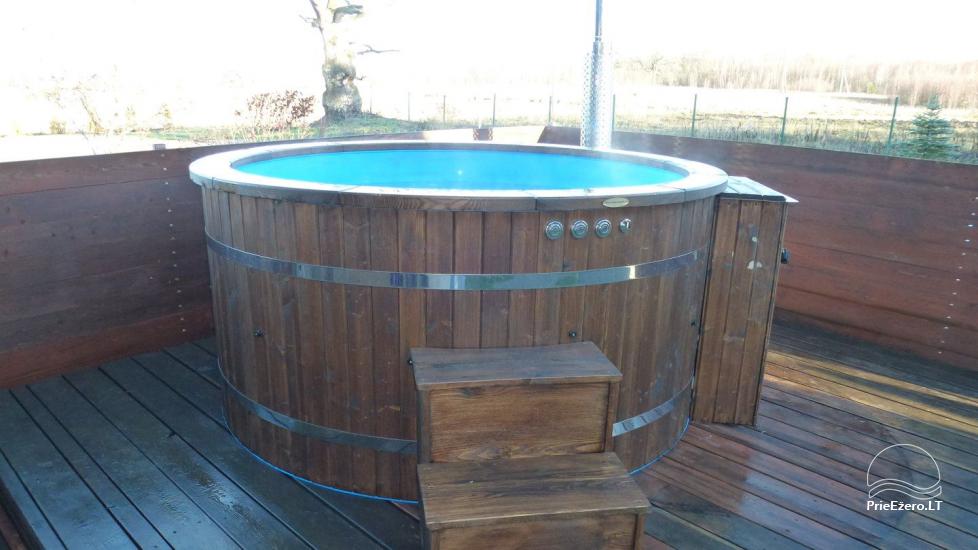 Tieši blakus lapenei atrodas liela burbuļvanna ar džakuzi funkciju 8-9 cilvēkiem.