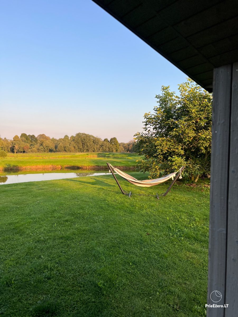 Apkārtnē ir pat 4 dīķi ar akvatoriju, kas aicina pastaigāties, atpūsties un baudīt dabas ritmu.