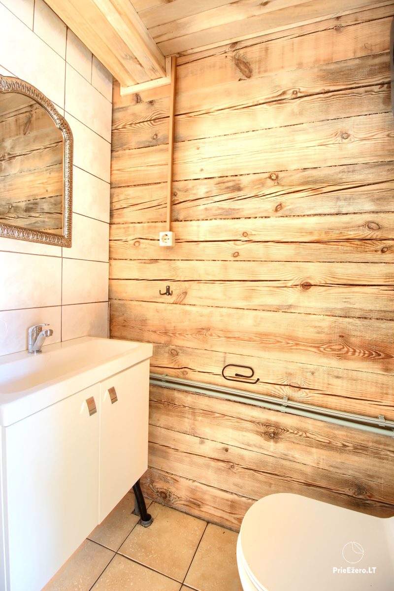 Jūsu ērtai atpūtai: piecvietīgs māja. Arī tiek piedāvāta īre visa sēta, kurai ir līdz 5 vietas nakšņošanai un svinībām.